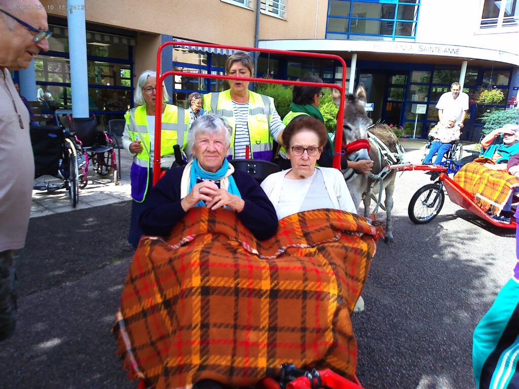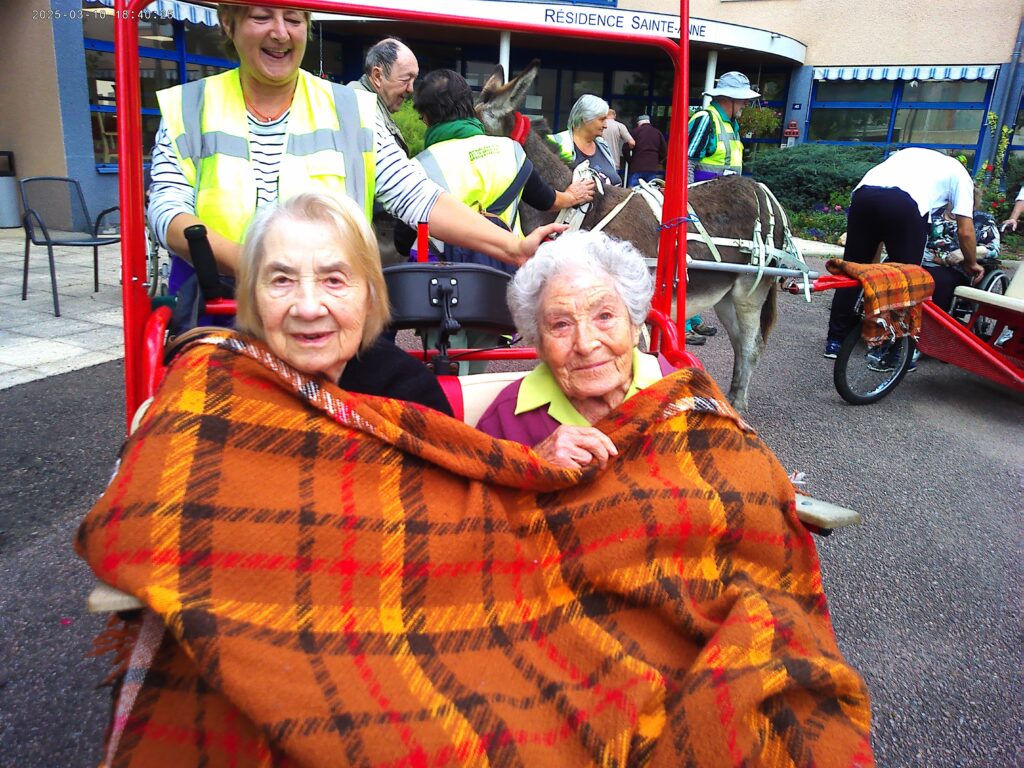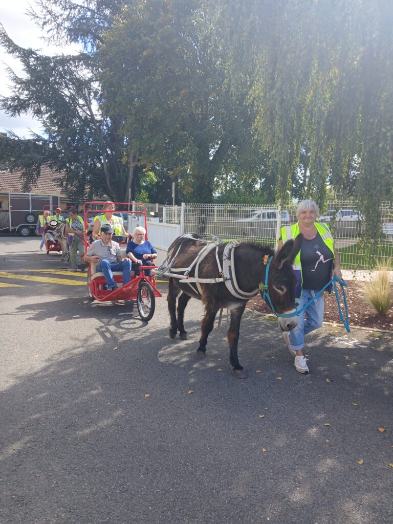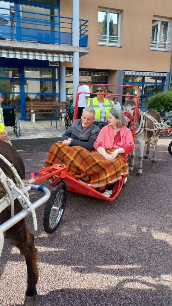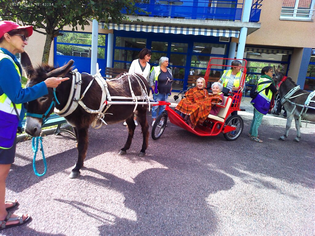 Avec patience, douceur et bienveillance, les membres de l’association ont organisé ces balades en petit groupe, permettant à chacun de profiter d’un moment de détente au rythme tranquille des ânes. Ces animaux, spécialement éduqués pour ce type d’animation, ont conquis le cœur des résidents par leur calme et leur gentillesse.