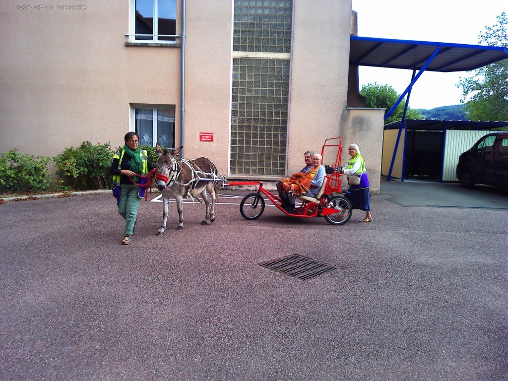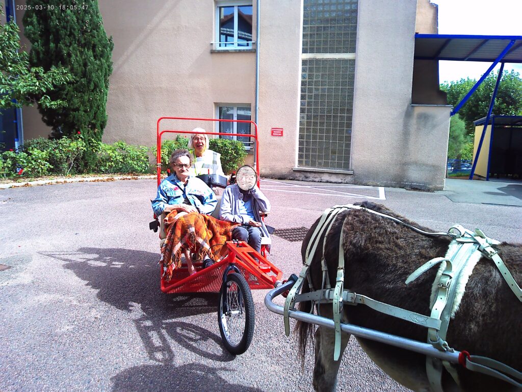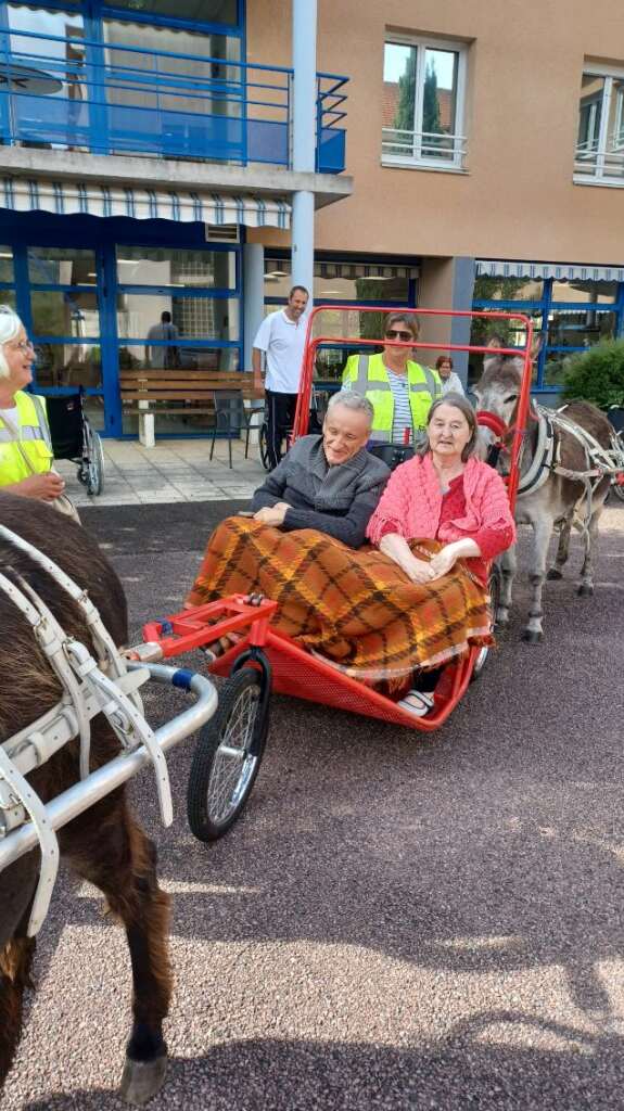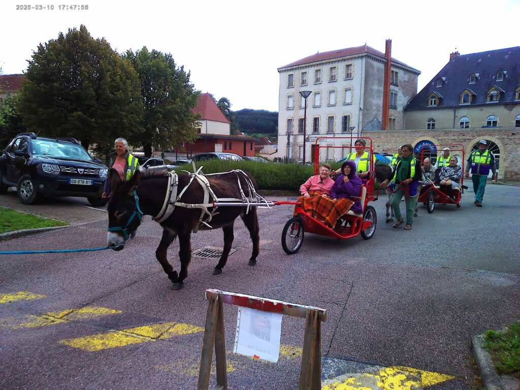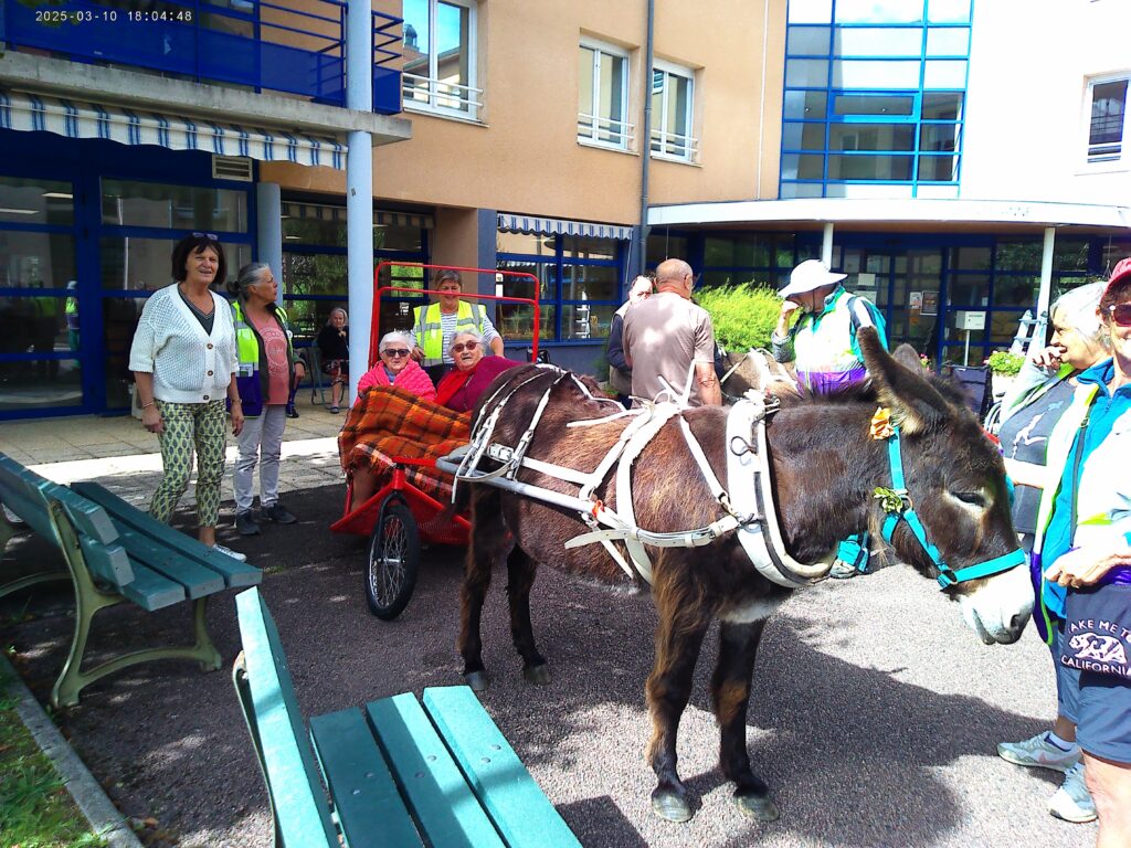Plus qu’une simple sortie, cette activité a été l’occasion de raviver des souvenirs, créer du lien et apporter un souffle d’air frais dans le quotidien de l’EHPAD. Pour certains, cela rappelait des moments d’enfance ou des souvenirs de campagne ; pour d’autres, c’était simplement l’émerveillement de se retrouver en pleine nature, bercé par le pas régulier des ânes.